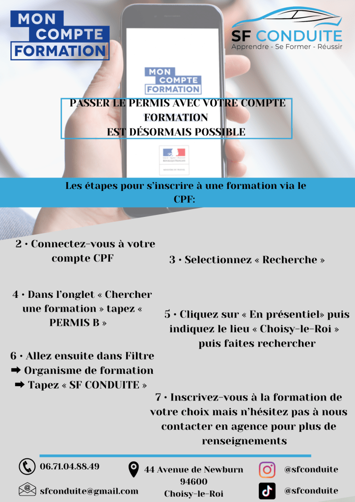 Il est possible d’utiliser son compte personnel de formation (CPF) pour financer l’examen du permis de conduire (code et conduite).